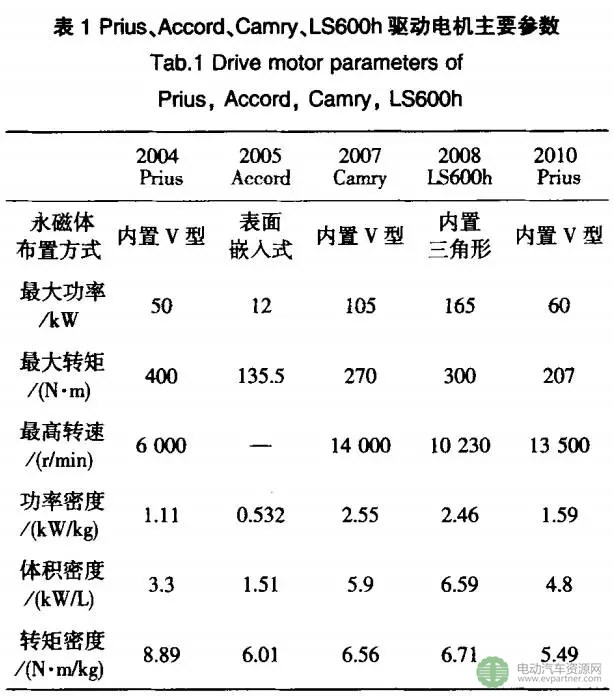 電機(jī)比表面式轉(zhuǎn)子結(jié)構(gòu)的2005Accord驅(qū)動(dòng)電機(jī)的大功率、大轉(zhuǎn)速和功率密度都有明顯的提