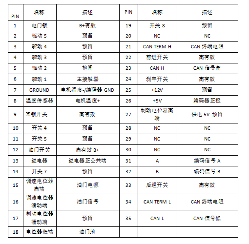 電機(jī)控制器接口定義